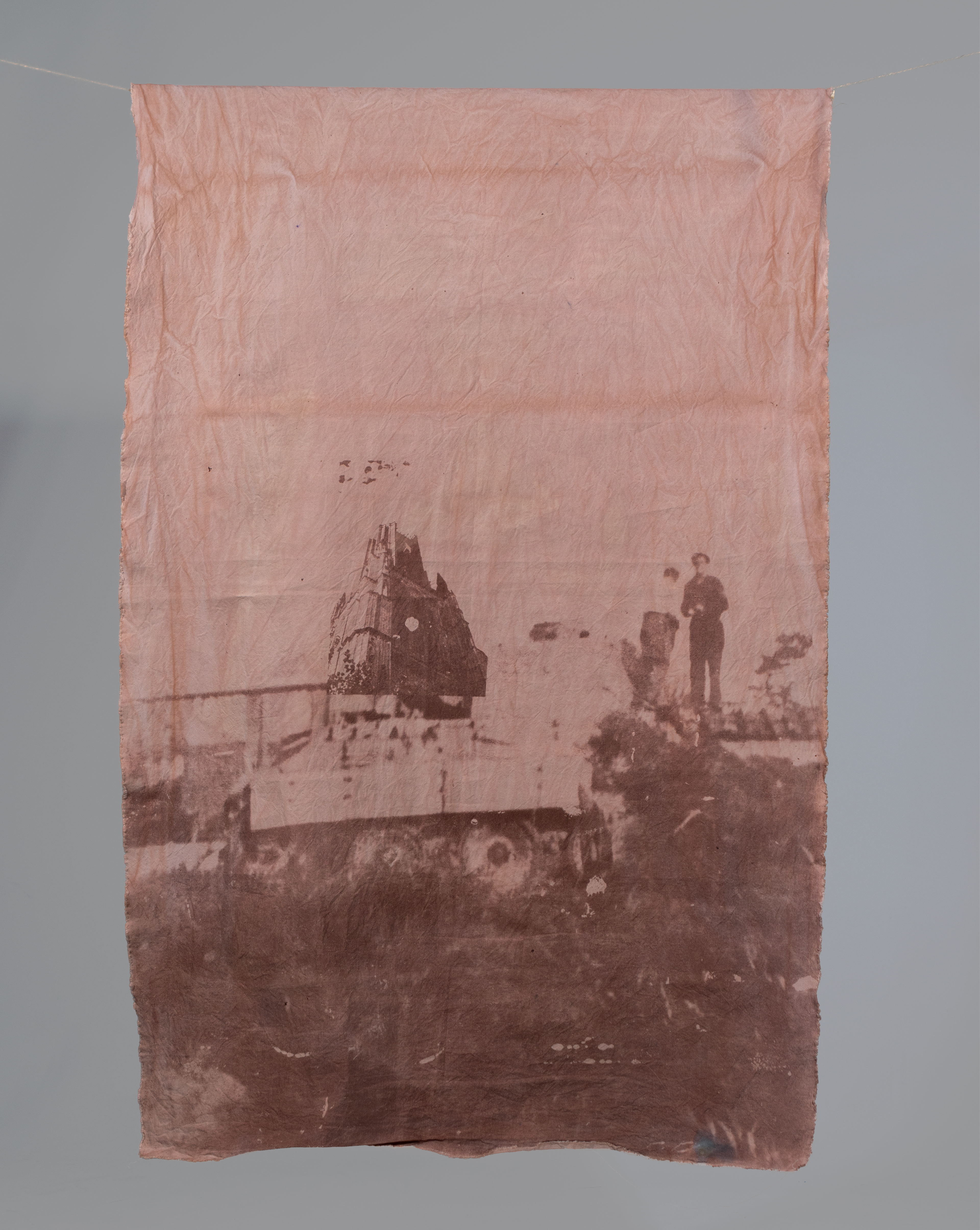 I have used different ways to show my image of the war in an accessible way. To show a literal image, but also a kind of fantasy way. How I think everything happens and how it appears according to our word from documentaries, films and books. Through toned cyanotypes on canvas, analogue photography, experiments in the darkroom, collages and film.